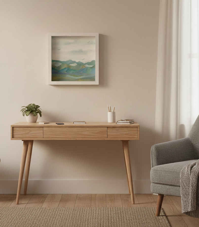 Original layered landscape artwork can add peace, stillness, and presence to your home.