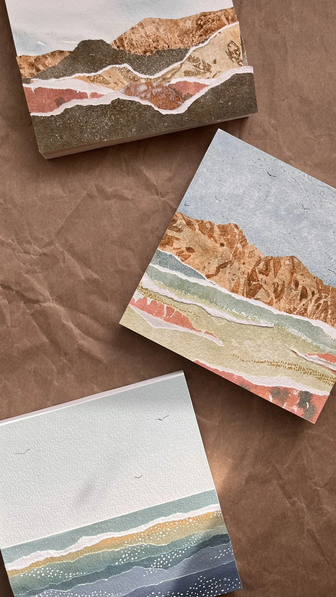 Originally from New England and now living in the mountains of Western North Carolina, I create layered, intuitive torn paper landscape pieces that reflect the calm and beauty found in the natural world around us.