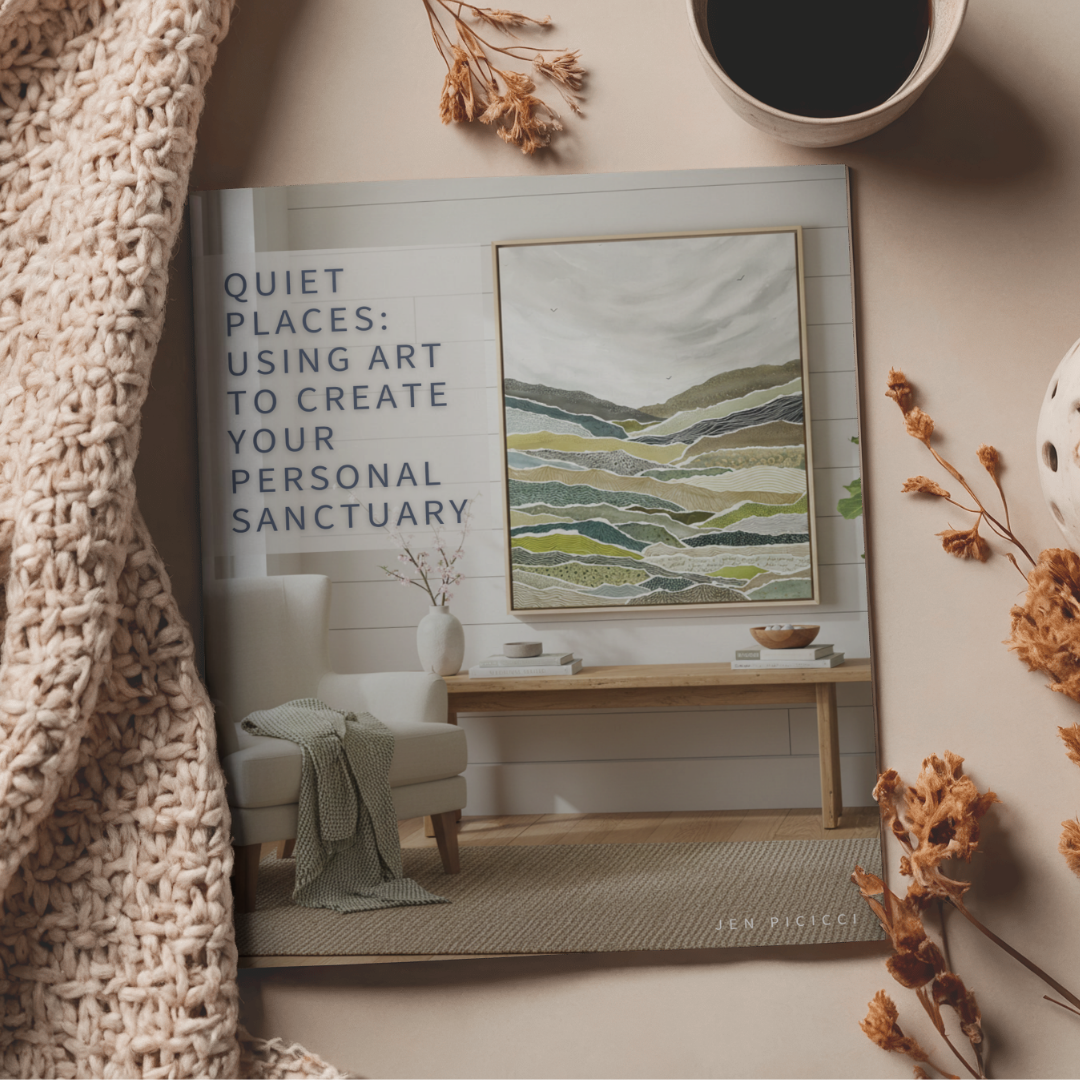 This free guide is your introduction to using art intentionally to add stillness and create a space and presence at home. Explore the influence of colors, textures, shapes, and thoughtful placement. You deserve a space that feels like sanctuary.